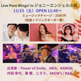 毎月恒例、ジョニーエンジェル小岩でのPure Wings Label主催ライブ、11月はとてもたくさんのアーティストが大集合。