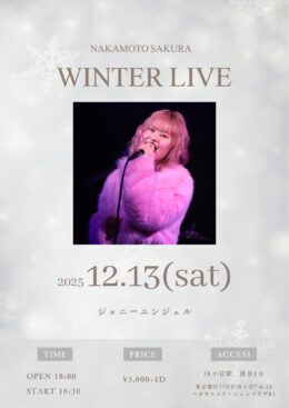 Johnny Angel > LIVE SCHEDULE > NAKAMOTO SAKURA NAKAMOTO SAKURA 開催日:2025年12月13日 18:30 - 2025年12月13日 22:00