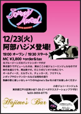 Johnny Angel > LIVE SCHEDULE > 阿部ハジメ 阿部ハジメ 開催日:2025年12月23日 19:30 - 2025年12月23日 22:00 阿部ハジメ Solo Live 19:00 OPEN 19:30 START ♪3800+tax~