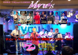 Johnny Angel > LIVE SCHEDULE > Myu’s Myu’s 開催日:2026年2月26日 18:30 - 2026年2月26日 21:30 昭和歌謡 Myu’s ♪3000 ★ツイキャスプレミア配信をご用意します。 遠方の方、都合で来れない方、是非、ご利用ください! ⇔90日間アーカイヴ中、いつでも見放題です。