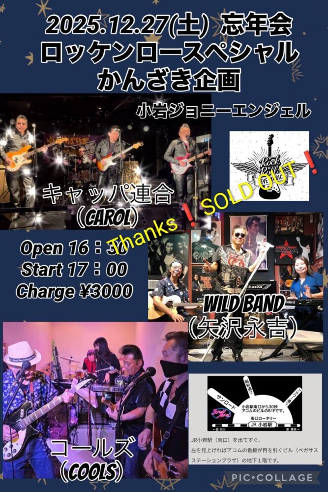 忘年会ロッケンロースペシャルかんざき企画 16:30 OPEN 17:00 START ♪3000+tax~ 当日、会場に来れない方のためにツイキャスプレミア配信をご用意します。 遠方の方、都合で来れなかった方、是非、ご参加ください! ⇔ライブ配信はアーカイヴ中、いつでも見放題です。